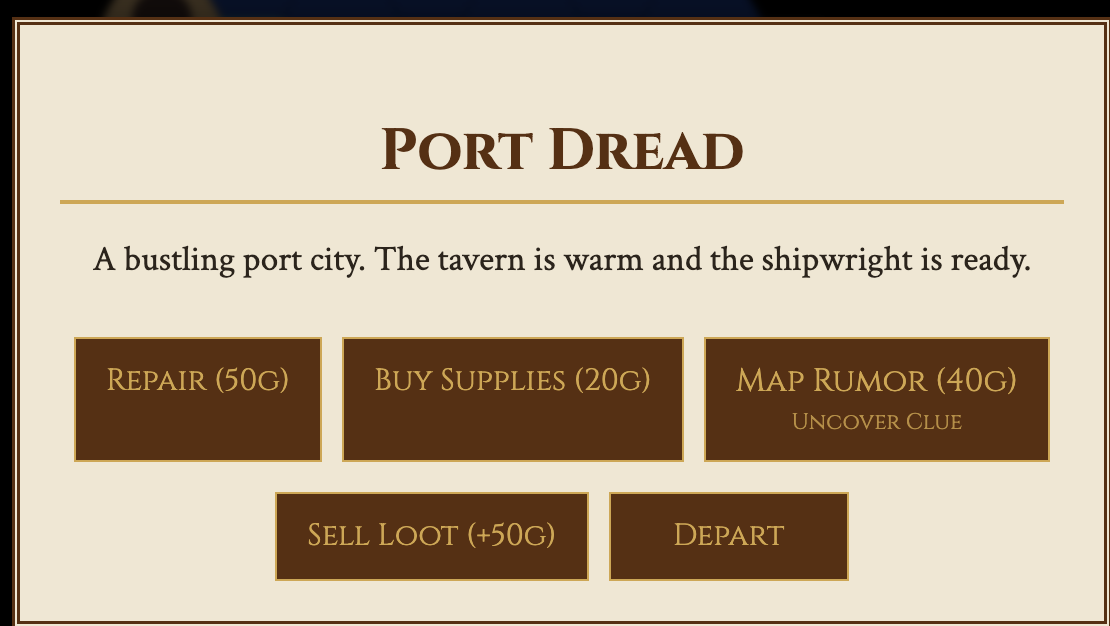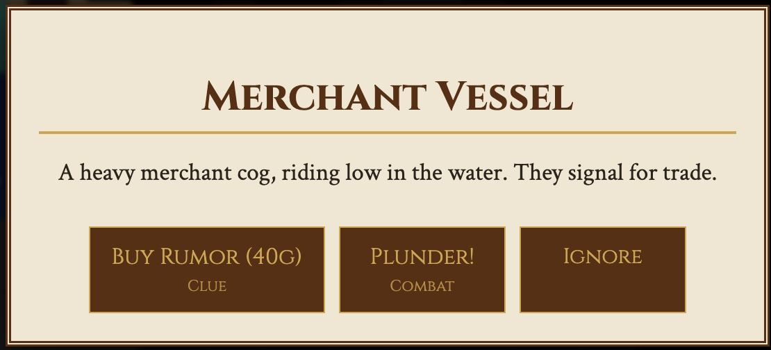 Sail hex by hex through haunted waters, bargain in colonial ports, and survive ambushes from raiders and ghost ships. Every clue tightens the noose—distance from a port, a direction, a terrain tell—until you can finally mark the truth on your chart and make the run for it. Trust your journal. Trust your crew. And don’t trust the lightning.